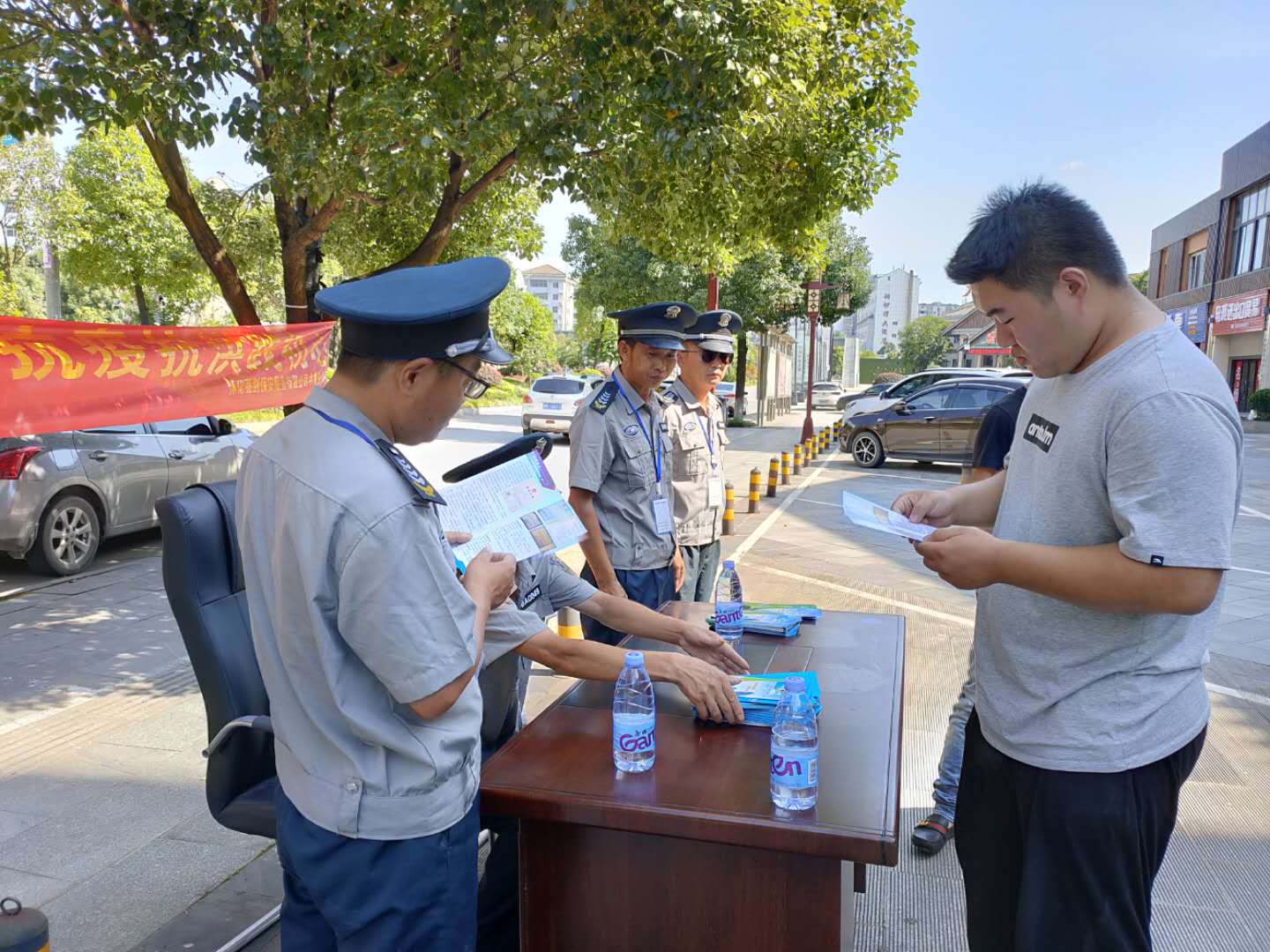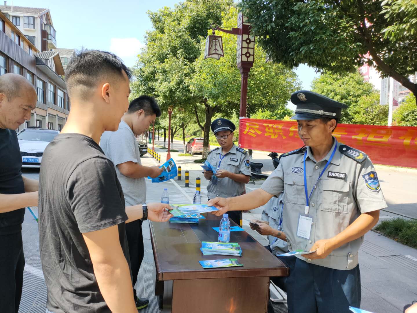 7月23日,懷化金劍保安公司中方分公司領(lǐng)導帶領(lǐng)保安隊員,來到懷化高新區(qū)園區(qū),進行保安行業(yè)主題宣傳。在活動現(xiàn)場,公司保安隊員以防人身侵害、防盜搶、防拐騙等為重點,面對面向群眾宣講安全知識,講解和培訓應急避險、緊急救助、自身防護等技能,引導群眾增強安全防范意識。同時向群眾發(fā)放宣傳資料200余份。